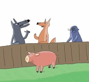 Una volta il lupo, la volpe e la lontra allevavano un maiale in società.